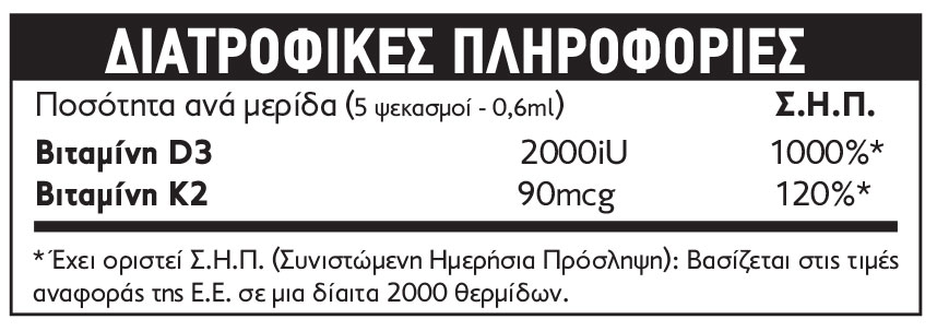 Οδηγίες Χρήσης: Σύμφωνα με τις οδηγίες του ιατρού ή του φαρμακοποιού σας. Aνα ψεκασμό λαμβάνετε 400iU D3 / 18mcg K2. Συμβουλευτείτε το γιατρό σας αν είστε έγκυος, θηλάζετε, βρίσκεστε υπό φαρμακευτική αγωγή ή αντιμετωπίζετε προβλήματα υγείας.